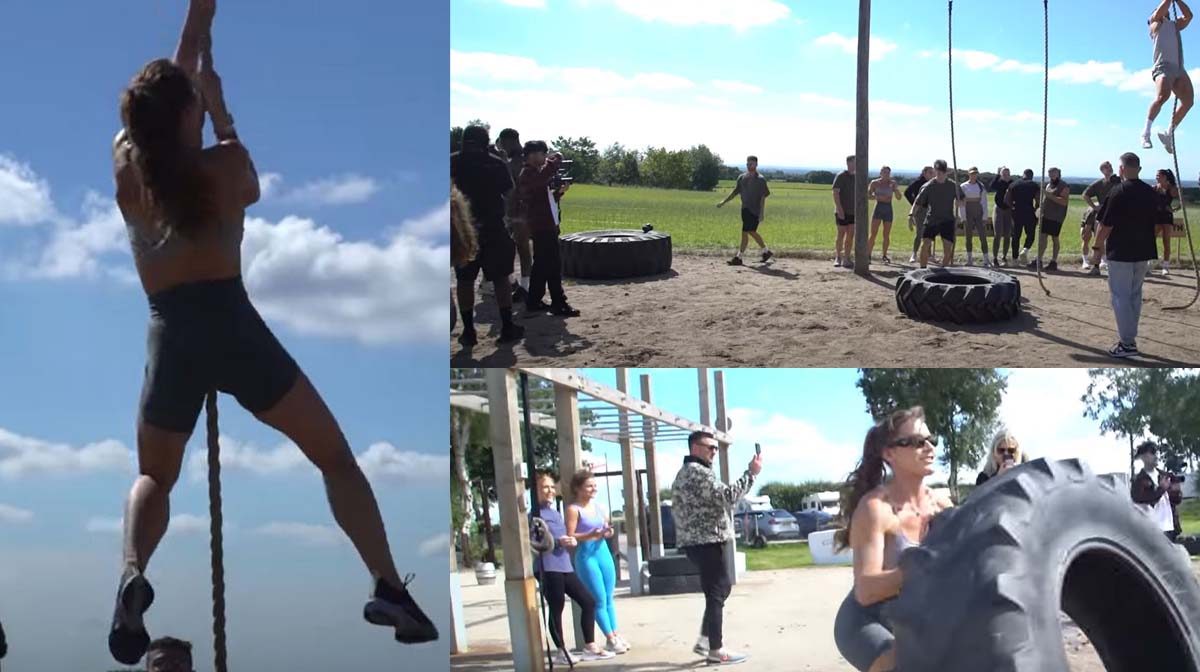 Først var der rope climb. Det var helt udmattende for deres hænder, og Lucy mistede endda en negl. Det blev hurtigt efterfulgt af box rolls, som er præcis, som det lyder: at rulle en kasse over en mark. Derefter dæktræk, mere rope climb, mere dæktræk, dækkast og burpees med en ekstra forhindring. Lucy var mildest talt udmattet. I betragtning af at hun er en ultramarathonløber, må det have været en seriøs træning.