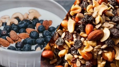 Proteinrige yoghurter, proteinbarer og nødder er alle gode kilder til protein og vigtige mineraler (herunder elektrolytter), og de to sidstnævnte har et højt fiberindhold.