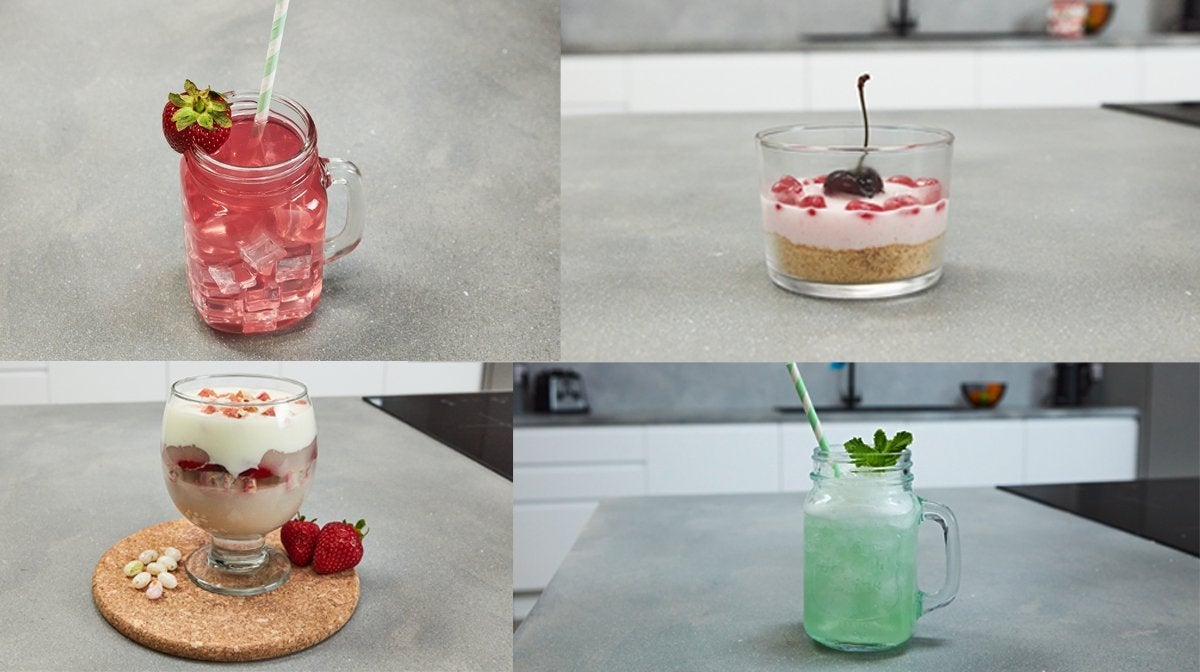 Vi har foreslået smagsvarianter, som vi anbefaler at bruge til hver opskrift, men du kan være kreativ med fem lækre smagsvarianter at lege med. Tutti-Fruitti, Green Apple, Berry Blue, Bubble Gum og Very Cherry - det er tid til at forkæle dine smagsløg.