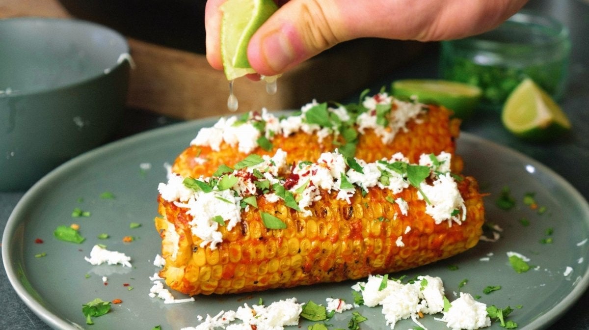 - Drys revet feta på de grillede majs, pynt med chiliflager og koriander, slut af med et stort pres lime og nyd det hele.