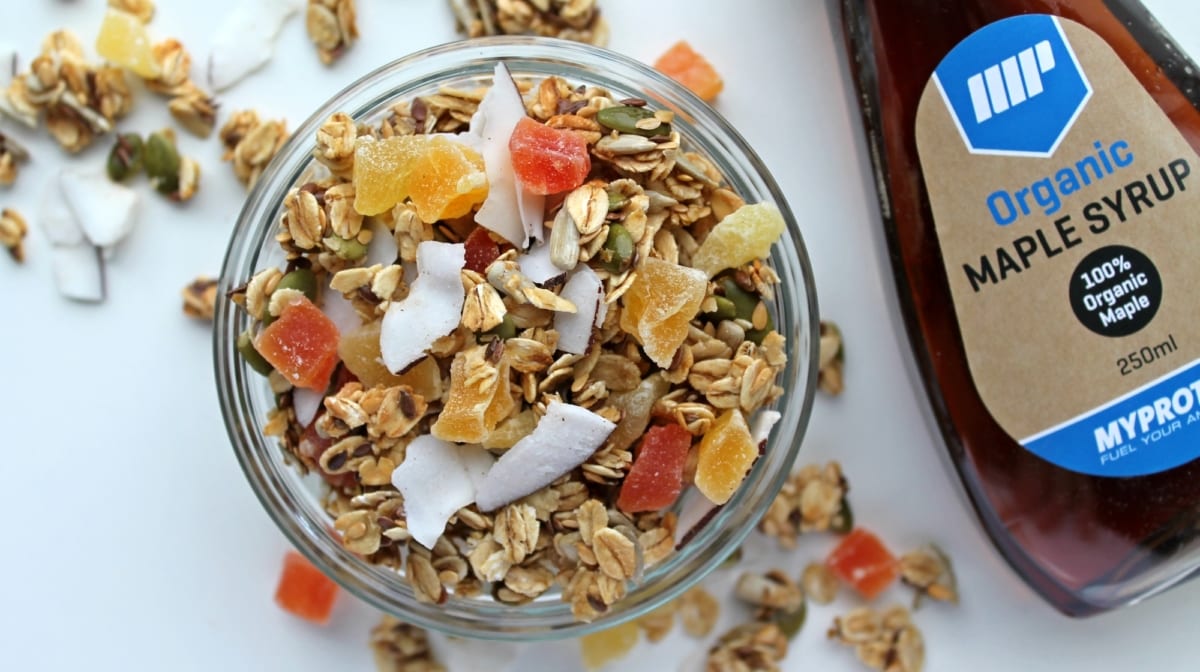 Blandingen af frø giver en god kilde til sunde omega 3 og 6 fedtsyrer, der er kendt for deres evne til at understøtte hjerte og hjerne. Myslien er sødet med ahornssirup, som er et naturligt alternativ til sukker, honning og kunstige sødemidler. For et tropisk twist er myslien fyldt med tørrede ananas.