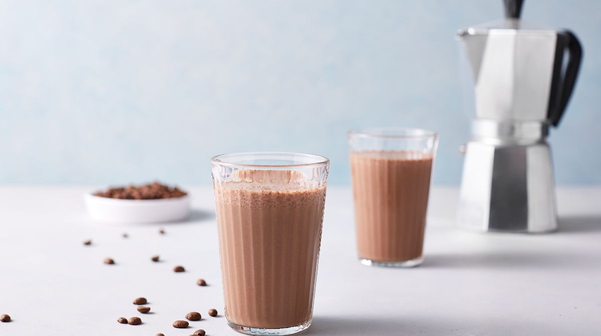 - Tilsæt alle ingredienser til en blender og blend på fuld styrke og nyd nu din kaffe chokolade protein smoothie.