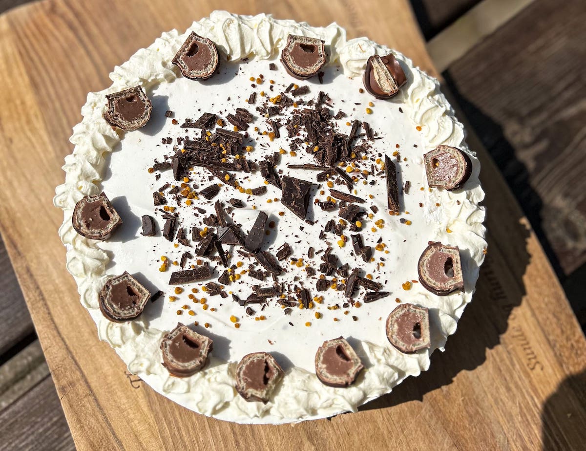 - Fordel herefter blandingen ovenpå kiksebunden i springformen