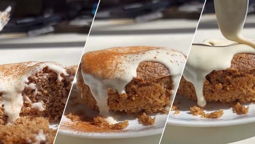 Denne luftige kanelbagte havrekage er toppet med en overbærende flødeostglasur, som med garanti vil give dig en god start på dagen. 33 g protein og 332 kalorier, jeg kan ikke vente med at prøve den.