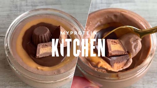 Peanut butter, chokolade og 27 g protein. OK, nu har vi din opmærksomhed, disse proteinpuddingbægre er et must. 394 kcal og 27 g protein, forbered et par stykker, og opbevar dem i køleskabet, når du trænger til noget sødt.
