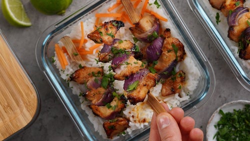 Det her er den slags aftensmad, du vil se frem til hele dagen. Den er sød, enkel og indeholder 30g protein pr. portion - perfekt til at nå dine makro-mål for sommeren. De sprøde oksekødsstrimler er også en dejlig afveksling fra opskrifter med kylling, og grøntsagerne tilføjer ekstra knas.