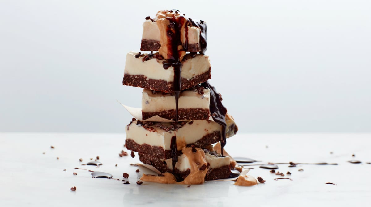 - Sæt tilbage i fryseren og lad stå i mindst 4 timer. Når det er tid til at spise, så tag ud af fryseren og tillad at optø i 15 minutter. Skær nu ud i firkanter og voila!