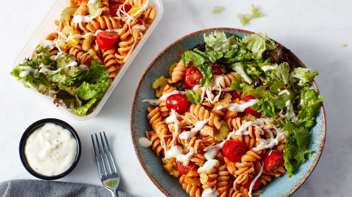 Savner du inspiration til at peppe din pasta salat og frokost op? Bliv en ægte champ i meal prep med denne makrovenlige og super nemme pasta salat med buffalo kylling.