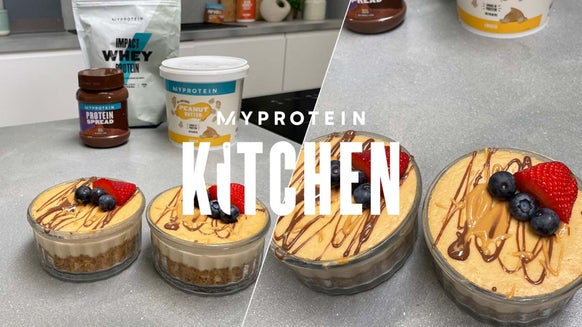 - Tilsæt 4 teskefulde peanut butter på toppen af blandingen og hvirvle med en kniv.