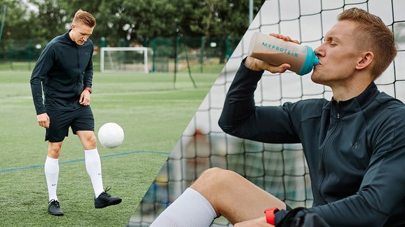 - Tilsæt først mælken og et scoop med Impact Whey Protein til en shaker og shake grundigt, så blandingen er fri for klumper.
