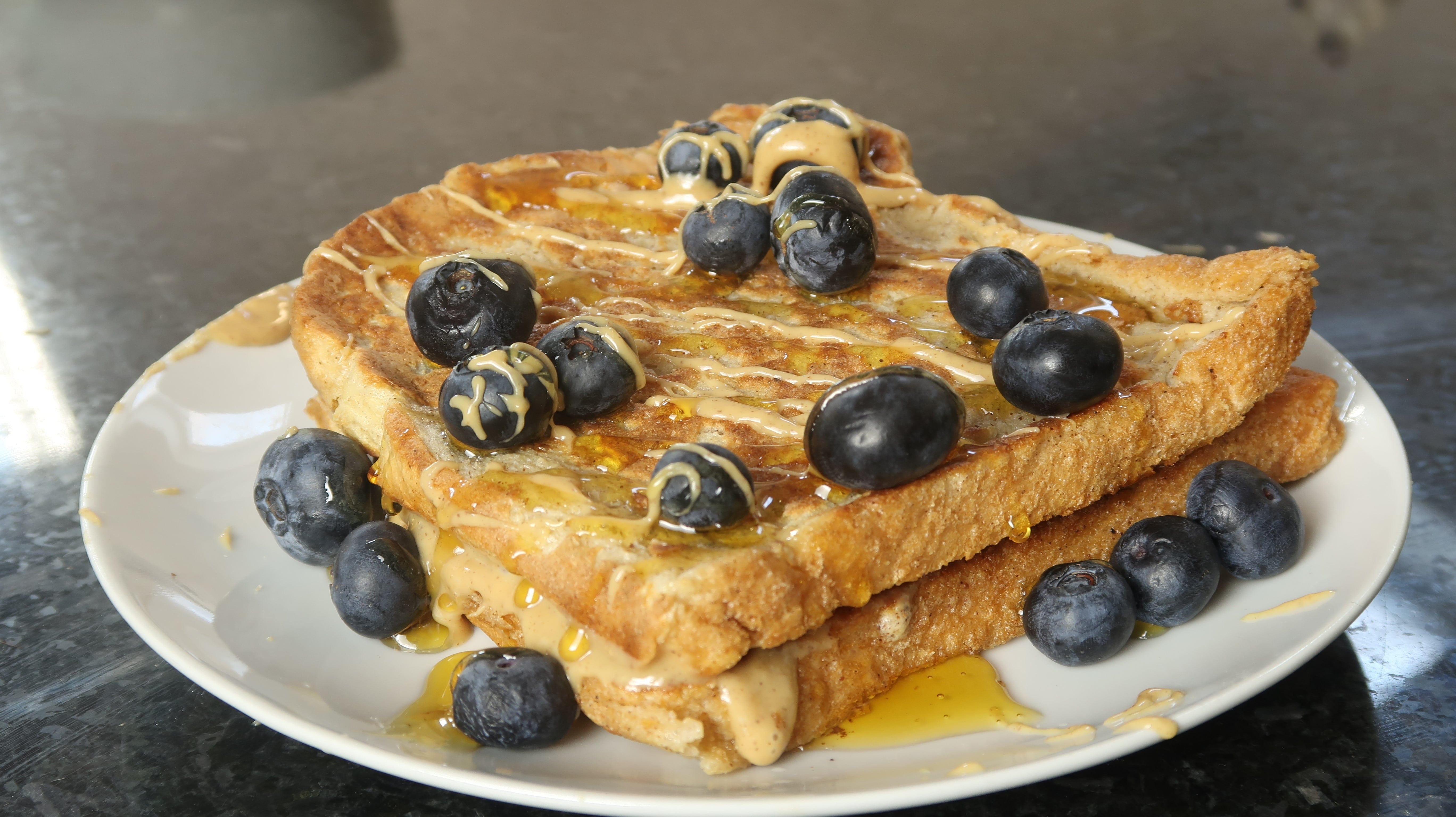 Er du stor fan af en ekstravagant morgenmad, men ønsker at holde din ernæring på sporet? En masse blåbær, cremet peanut butter og sød sirup. Dine smagsløg vil virkelig blive forkælet godt og grundigt, når du sætter tænderne i disse protein arme riddere.