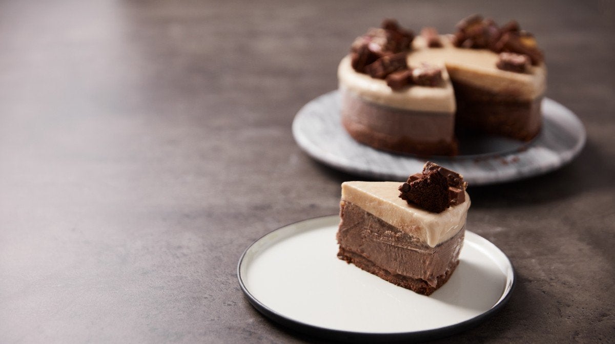 - Når 30 minutter er gået, skal du fjerne kagestykket fra fryseren og hælde dette andet yoghurtlag ovenpå. Brug en spatel til at udjævne den på tværs, så den dækker hele kagen. Frys derefter i mindst 4 timer, fortrinsvis natten over.
