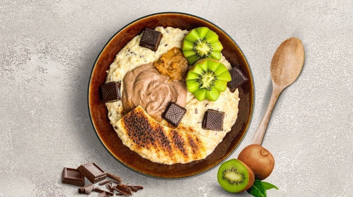 Vi elsker grød. Især når der er et ekstra protein boost. Endnu bedre er, at der er frit valg på alle hylder til prikken over i'et - nemlig toppings! I denne opskrift er Daniel gået med chokolade, kiwi, saltkaramel, chokolade creme og banan. En himmels kombination af velsmagende ingredienser, der sikrer dig den bedste start på dagen.