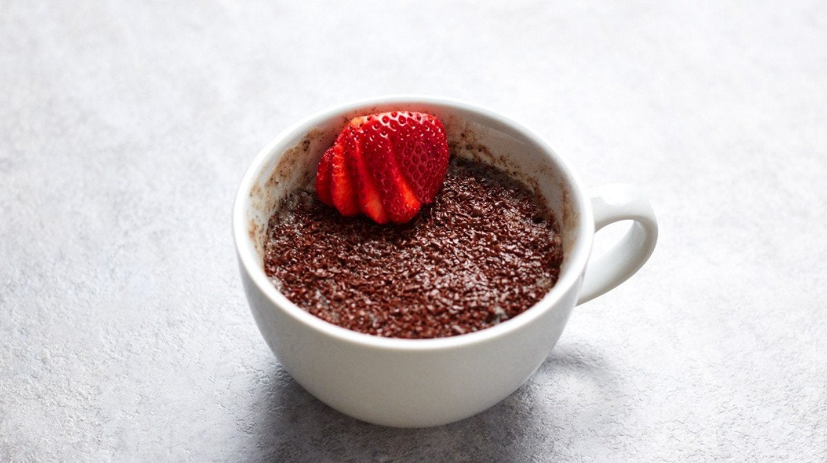 - Når det er fuldt blandet, skal du placere din kop i mikrobølgeovnen og mikrobølgeovn i 90 sekunder ved 800 watt. Timingen kan variere afhængigt af din mikrobølgeovn, så vi anbefaler, at du holder øje med kagen hele tiden. På grund af den tætte blanding stiger den ikke så meget, så vær forsigtig med ikke at koge for meget.