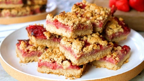 Crumble barer med jordbær og fersken