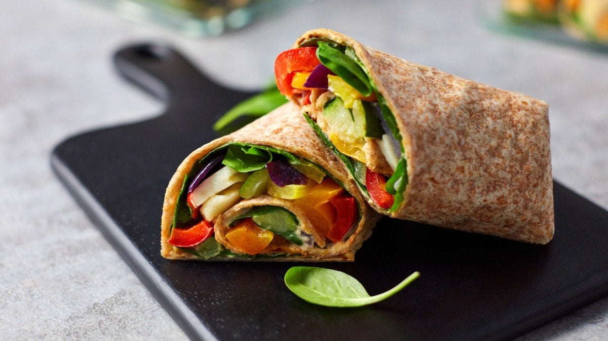 - Lav en stram indpakning ved først at folde over to modsatte sider af tortillaen og derefter rul op fra bunden. Skær diagonalt og indpak det enten i folie eller læg direkte ned i din madkasse.
