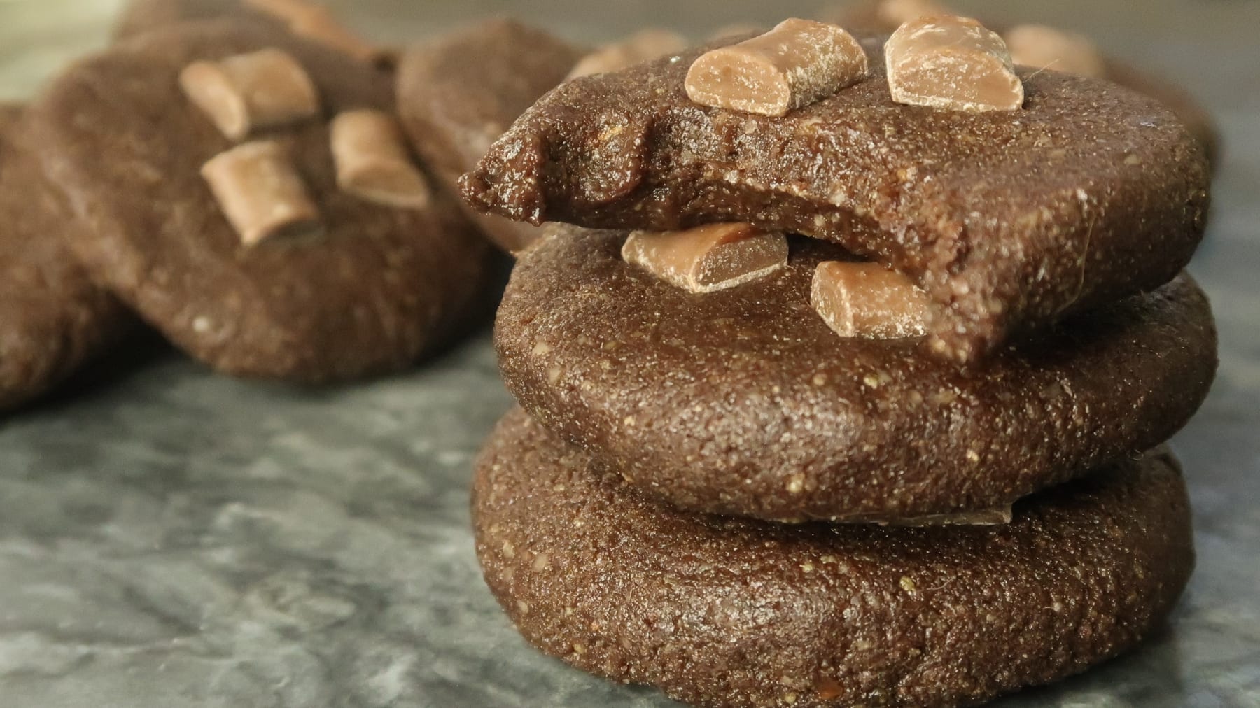 Brownies skal simpelthen være lidt snaskede indeni med den lækreste chokolade. Noget som oftest behøver at blive bagt for at opnå netop dette delikate bid. Dadlerne og ahornsirup hjælper med at gøre disse no-bake brownie cookies snaskede på den gode og søde måde. Akkurat ligesom de skal være!