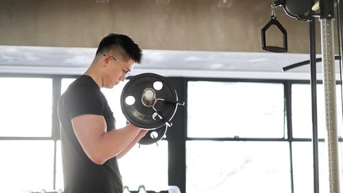 - Træk vægten ind mod din core for at trække dig sammen, og vend tilbage til startpositionen for din næste rep