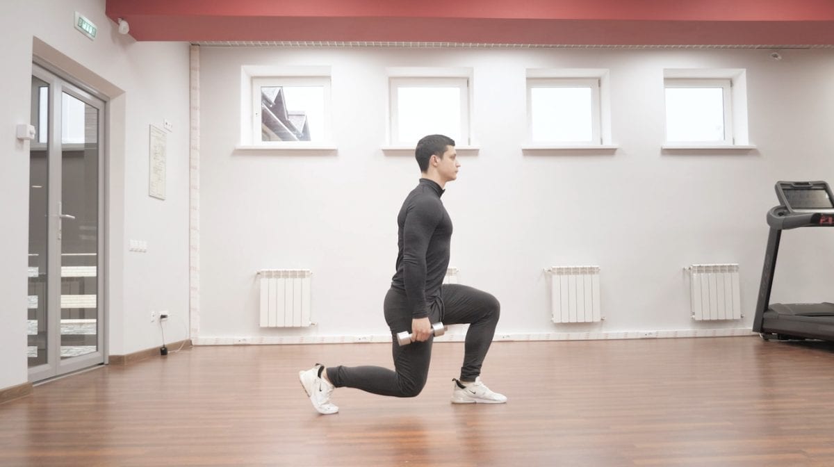 - Når du sænker mod jorden, skal du stoppe, når dit førende knæ når lidt under 90°, og dit lår er parallelt med gulvet. Husk ikke at lade dit bagerste knæ røre ved jorden. Dette sikrer, at dine muskler er fuldt aktiverede gennem hele bevægelsen.