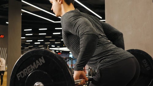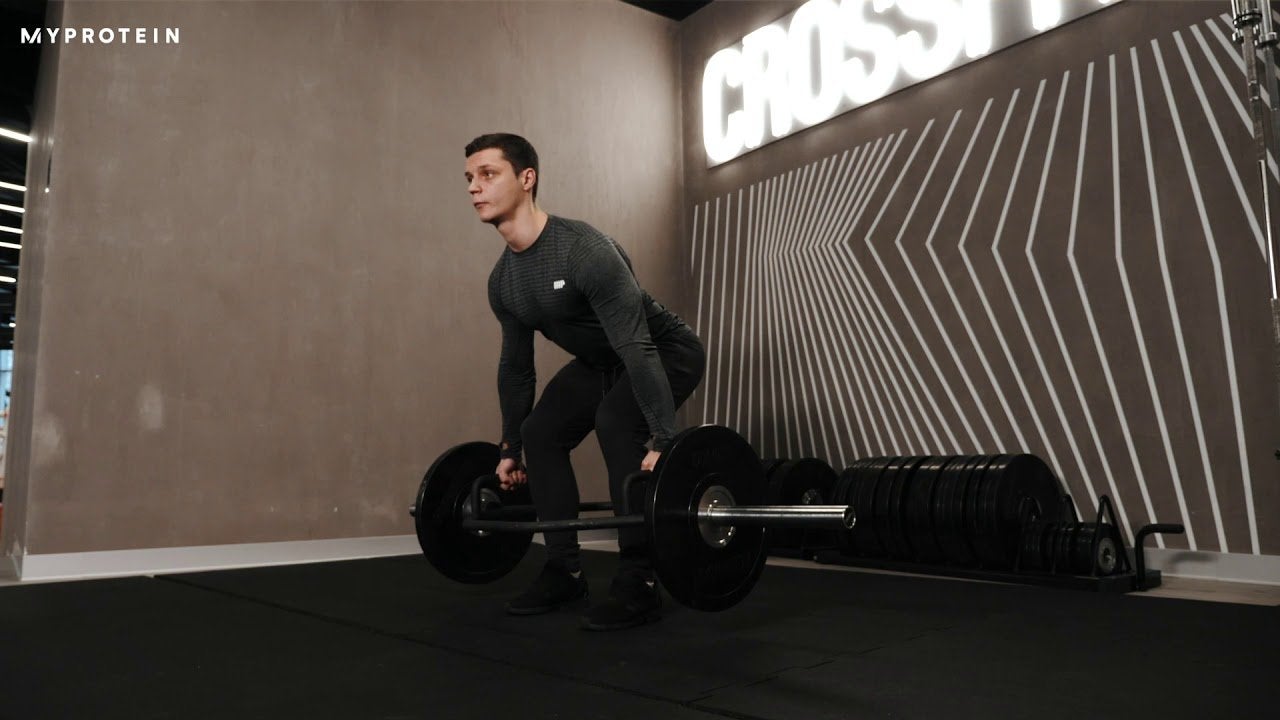 - Når du trækker, skal du sørge for, at stangen holdes tæt på kroppen for at reducere ROM. Sigt mod at presse gennem dine hæle ned i jorden og bring dine hofter på mod mod baren. Når baren er låst ud, sænk den på en kontrolleret måde og placer hofterne bagud.
